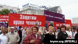 Симферополь – В первый день мая в Крыму состоялось несколько первомайских демонстраций – две в Севастополе, одна в Симферополе, прошли демонстрации и гуляния в городах и районных центрах. Их участники и сторонние наблюдатели отмечают важную особенность – в Крым возвратился советский стиль празднования Первомая.