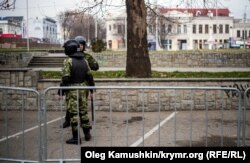 В среду, 10 декабря, в День защиты прав человека, центр Симферополя оцеплен силовиками.