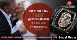 В начале августа в интернете появился сайт под названием «Часы Пескова», который заявляет о себе как о «достоверном индексе российской экономики». Посетители портала могут увидеть, как цена на часы пресс-секретаря президента России Дмитрия Пескова, которые якобы стоят 620 тысяч долларов, меняется в зависимости от актуального курса валют. На 1 августа 2015 года, когда Песков официально оформил брачные отношения с олимпийской чемпионкой Татьяной Навкой (уроженкой Днепропетровска, а ныне гражданкой США), цена на часы марки Richard Mille RM 52-01 составила почти 37,8 миллионов рублей. Автор сайта «Часы Пескова» – 29-летний программист из России Никита Грошин, который живет сейчас в США, уверяет: этот проект не имеет политических целей.