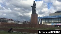 Ближе к 12 часам, когда должна была начаться трансляция из Москвы, мастера включили телеканал «Первый крымский» (в прошлом – ГТРК «Крым»). На площади стали собираться люди, однако их было не более двух-трех десятков, в том числе сотрудники правоохранительных органов. Одни стояли в нескольких метрах от экрана, другие решили присесть у подножия памятника Ленину напротив.