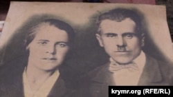 На столике разложены фотографии из семейного архива, в центре установлен портрет отца Азиме – Сейтхалила. Вспоминает свою бабушку, не пережившую невыносимую дорогу в вагонах для скота, в которых перевозили крымских татар.