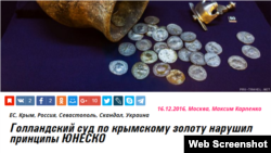 Сайт Politnavigator 16 декабря сообщил, что решение суда Нидерландов вернуть скифское золото Украине якобы противоречит принципам ЮНЕСКО об охране культурных ценностей.