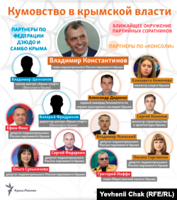 Спикер подкконтрольного России крымского парламента Владимир Константинов предпочел окружить себя «старыми крымскими кадрами» – бывшими регионалами, с которыми он прошел не одну избирательную компанию. Также в первых ешелонах крымской власти сейчас работают люди из его строительной корпорации «Укрросбуд» и фирмы «Консоль».