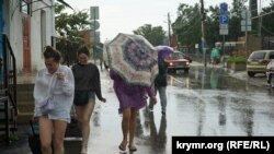 Ливни, грозы, град и шквальный ветер – в начале июля погода в Крыму выдалась совсем не летняя. Часть населенных пунктов полуострова остались без света из-за непогоды, сильный ливень в Симферополе затопил центр города, а в Севастополе выпал обильный град размером с мячик для пинг-понга. Кроме того, в апреле и мае нехарактерные для Крыма заморозки привели к повреждению около 2,5 тысяч из 12,5 тысяч гектаров садов. Подконтрольный Кремлю министр сельского хозяйства Крыма Андрей Рюмшин оценил ущерб только от апрельской непогоды в 188 миллионов рублей.