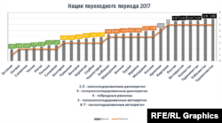 Составители рейтинга в 2017 году отмечают тревожные тенденции отхода от демократического развития на всем постсоциалистическом пространстве. В Восточной Европе это связано с ростом популизма, а на территории Евразии – именно с консолидацией правящих элит.