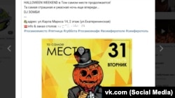 В открытом доступе Крым.Реалии нашли больше десяти объявлений от развлекательных заведений полуострова о проведении праздничных программ в ночь на 1 ноября. Некоторые уже отметили Хэллоуин несколькими днями ранее.