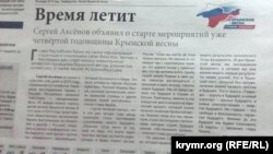 «Крымская газета» в материале «Время летит» пишет о старте так называемых мероприятий по случаю четвертой годовщины «крымской весны». Об этом сообщил подконтрольный Москве глава Крыма Сергей Аксенов, разместив на своих официальных страницах в социальных сетях Фейсбук, Твиттер и Инстаграм символику, а также хештег #строимбудущее. «Приближается четвертая годовщина воссоединения Крыма с Россией. Республика начинает подготовку к празднованию. День 28 января можно считать датой начала крымской весны. В этот день в 2014 году представители общественных организаций Крыма, выступающие за сближение и дружбу с Россией, собрались в центре Симферополя, чтобы выразить свой протест против так называемого евромайдана, который бесновался в Киеве. Это были активисты партии «Русское Единство», Русской общины Крыма, казачьих организаций, жители крымской столицы и других городов нашей республики», – написал Аксенов.