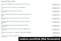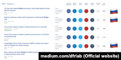 Анализ DFR показал, что из шести самых популярных статей в Twitter и Facebook об отравлении Скрипаля за прошедшую неделю, четыре были опубликованы RT, принадлежащей Кремлю, и распространены 63 тысячи раз. В то же время два популярных материала в СМИ Великобритании имеют только 24 тысячи распространений.