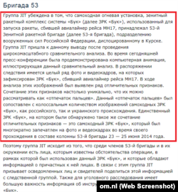 СМИ сообщили, что Совместная следственная группа (JIT) назвала именно 53-ю бригаду Вооруженных сил России в связи с якобы установленными «отпечатками пальцев» военных Российской Федерации.