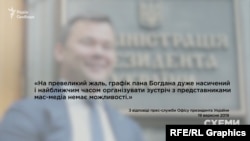 «К большому сожалению, график господина Богдана очень насыщенный и в ближайшее время организовать встречу с представителями масс-медиа нет возможности», ‒ говорилось в ответе пресс-службы Офиса президента Украины на запрос об интервью.