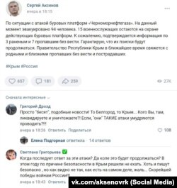 В крымских соцсетях появляются обеспокоенные комментарии. Например, вот такие можно увидеть в соцсети ВКонтакте: