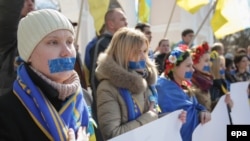 Проукраинские силы провели в Симферополе акцию протеста с требованиями прекратить цензуру в СМИ, дать крымчанам доступ к украинскому информационному полю и отпустить задержанных журналистов и активистов.