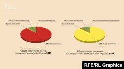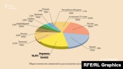 По Крыму, который в 2014 году аннексировала Россия, статистика кажется более понятной: большинство жалоб украинцев поданы против Российской Федерации или против России и Украины одновременно.