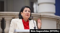 Завершив свою речь, Саломе Зурабишвили вышла к собравшимся через центральные ворота под скандирование «Спасибо!», чтобы пожать им руки и поблагодарить за поддержку.