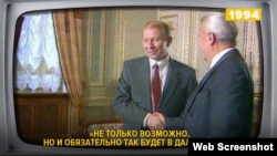 1994 год. Следующий президент Леонид Кучма клал руку уже на Пересопницкое евангелие. Традиционной булавы и других символов власти никто не вручает. Но тогда появилась другая ‒ неписанная ‒ традиция: предыдущий президент Кравчук пришел символически передать власть своему преемнику.