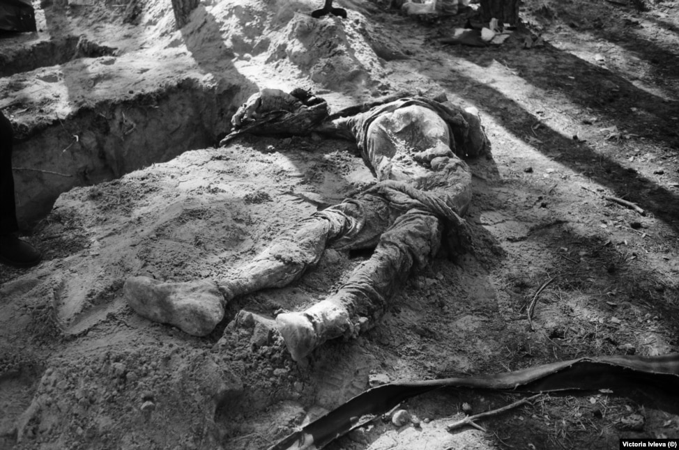 На моих глазах люди в белых одеждах выкапывают человека, похороненного с рюкзаком за спиной. У него нет ни имени, ни фамилии. Только полуистлевший рюкзак и номер на могильном кресте. Человека кладут в белый пластиковый мешок. Плотно застегивают молнию. Подписывают "Невiдомий чоловiк" – неизвестный мужчина.