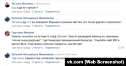 Однако ее рассуждения разбивают в пух и прах более подкованные граждане. «Светлана, ракета след оставляет при взлёте, а при падении какой может быть след», пишут Виталий-Наташенька Мираимовы.