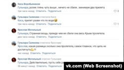 «Что сбили, если отчетливо был виден прилет?» – пишет Денис Крымский. Этот комментарий продержался всего несколько секунд, после чего был удален администраторами группы.