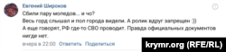 В сообществе «Евпатория Подслушано и Подсмотрено» соцсети «Вконтакте» видео перепостили, но обсуждение было не таким активным, как в Севастополе. К утру набралось меньше 80 комментариев.
