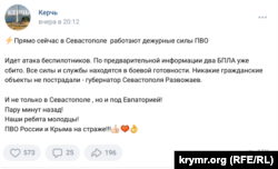 Интересно, что севастопольские события обсуждали даже в далекой Керчи – сообщение об атаке БПЛА было опубликовано в сообществе «Керчь».