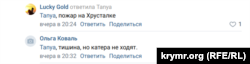 «Пожар на Хрусталке», – сообщила пользовательница под ником Lucky Gold. «Тишина, но катера не ходят», – отметила Ольга Коваль.