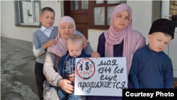 Крымские татары фотографируются с плакатами с напоминанием о трагедии 1944 года и продолжающихся репрессиях. Они делятся фотографиями в социальных сетях.