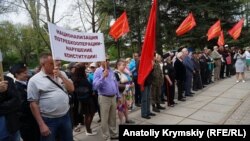 В симферопольском сквере Героев социалистического труда, на набережной Салгира, состоялся митинг в честь 1 мая, на котором участники призвали не голосовать на местных российских выборах за кандидатов от партии «Единая Россия».