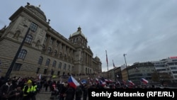 «Мы должны заботиться, в первую очередь, о безопасности Чехии, а не помогать Украине, не думая о собственном народе, как делают сейчас чешские власти», – сказал один из организаторов акции со сцены вблизи Национального музея.