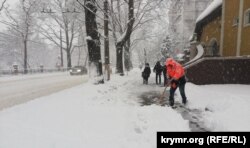 Крымский гидрометцентр сообщает, что в Симферополе за минувшую ночь выпала почти половина месячной нормы осадков – 11 мм снега. При этом корреспондент Крым.Реалии сообщает, что местами толщина снежного покрова достигает 20 см. По его словам, такого снегопада, который продолжался и утром, жители крымской столицы не видели несколько последних лет.