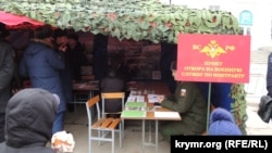 На привокзальной площади была небольшая выставка образцов российского оружия, а также палатка для записи на службу в армию России по контракту.