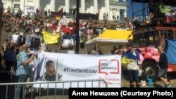Во время выступления сестра Сенцова Наталья Каплан призвала российского президента подписать прошение матери режиссера о помиловании, которая она отправила накануне.