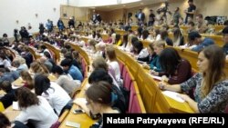 В красном корпусе Киевского национального университета имени Тараса Шевченко пишут радиодиктант известные украинцы.