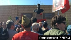 Когда люди, пришедшие на открытие бюста генералиссимусу, начали расходиться, к памятнику Сталину подошел глава регионального отделения "Мемориала" Александр Рудницкий – эта организация тоже выступала против установки бюста. Он сфотографировал таблички, висящие на стене с двух сторон от памятника, и удалился, уклонившись от комментариев.