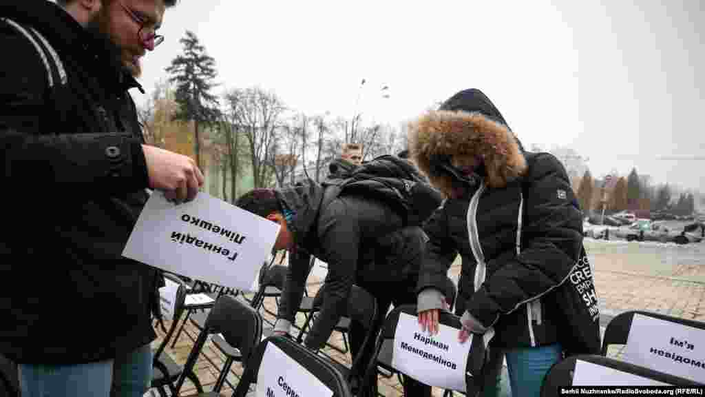 15 ноября на Михайловской площади в Киеве прошла акция «Пустые стулья» в поддержку украинских политзаключенных в России, а также на временно неподконтрольной украинской власти части территории Донбасса.