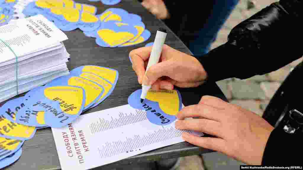 Во время акции на Майдане работал стенд кампании #Prisoners Voice, где проходил сбор открыток.
