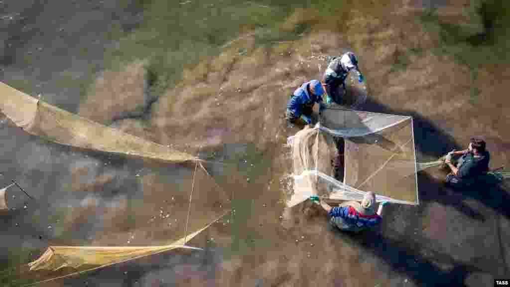 В прудах креветочной фермы, которая находится в селе Портовое Раздольненского района, осенью начался вылов креветок. Работники собирают улов и доставляют в цех переработки, который находится на территории бывшего рыбколхоза. Далее креветки промывают, отбирают и готовят к заморозке.