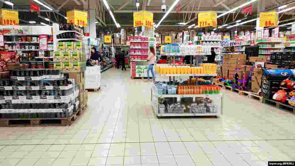 Единственный на полуострове гипермаркет «Ашан», работающий в условиях санкций, одно из популярных мест среди жителей и гостей Симферополя. Сюда, как правило, приезжают семьями, чтобы совершить закупку продуктов, а также пройтись по близлежащим магазинам в ТЦ «Южная галерея».