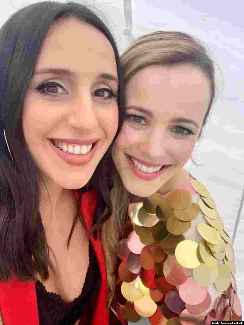 Украинская певица крымскотатарского происхождения Джамала и канадская актриса Рейчел Макадамс на съемках комедии «Евровидение. История огненной саги».