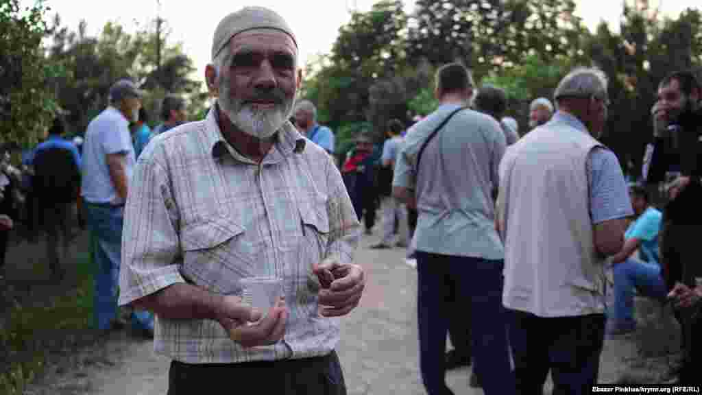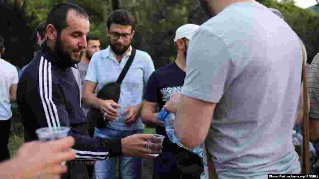 Вечером 31 мая ифтар провели у здания суда. После вечерней молитвы собравшиеся делились финиками и водой, ожидая приговор суда. Корреспондент Крым.Реалии зафиксировал, как это было.