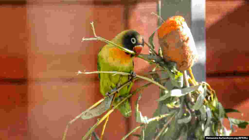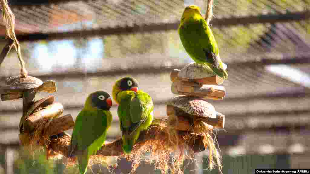В Гагаринском парке Симферополя появился вольер с попугаями-неразлучниками. В загоне поддерживают необходимую для птиц температуру и запрещают кормить или отлавливать их.