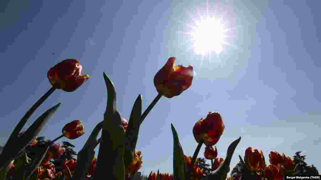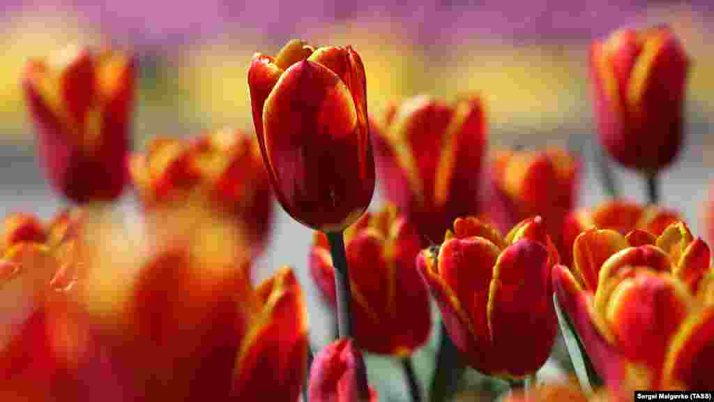 В Никитском ботсаду цветут тюльпаны. Сейчас там нет посетителей: парк закрыт до конца апреля. Из-за пандемии коронавируса выставку тюльпанов можно «посетить» только онлайн.