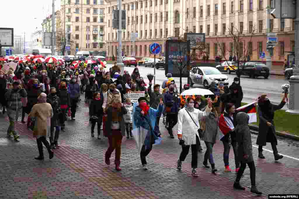 Участники акции собрались на площади Симона Боливара и прошли от Первомайской до площади Победы, а затем по проспекту Независимости к Академии наук, откуда вернулись на площадь Якуба Коласа.