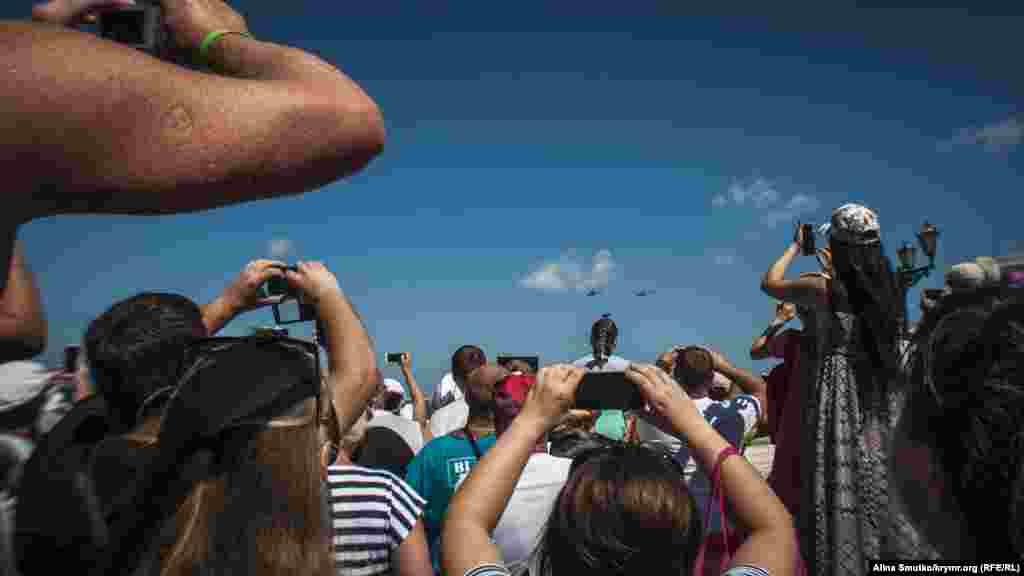 Служащие Черноморского флота устроили для горожан огромное действо в Севастопольской бухте. На праздник собралось более 100 тысяч зрителе. В морском параде участвовали 36 кораблей и авиационная техника.