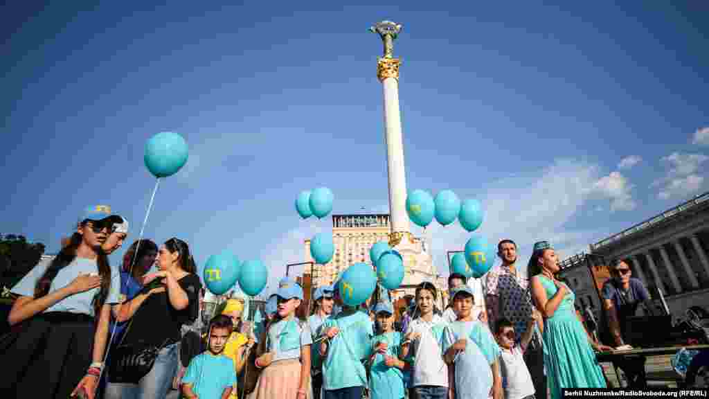 В Киеве на Майдане Независимости 26 июня прошел митинг, приуроченный ко Дню крымскотатарского флага. В начале мероприятия прозвучали гимны Украины и крымскотатарского народа, а член Меджлиса Эскендер Бариев рассказал об истории национального символа крымских татар. Также со вступительным словом выступил председатель Меджлиса крымскотатарского народа Рефат Чубаров.