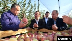 И вот он привез прямо в студию Владимиру Соловьеву со Ставрополья современные российские яблоки. – Ловите, Володя! (кидает яблоко)" – "У, какие тяжелые!" (ловит Володя) – "Угощайтесь! Они вкусные! Мы сами можем себя обеспечить!"
