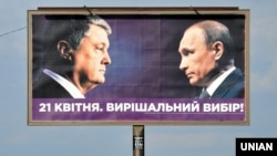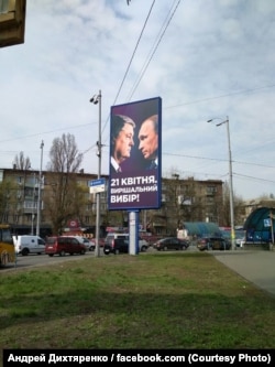 «21 апреля. Решающий выбор» ‒ плакаты с такой надписью, а также изображениями кандидата в президенты Украины Петра Порошенко напротив президента России Владимира Путина начали появляться на украинских улицах менее чем за две недели до второго тура выборов и вызвали настоящий скандал.