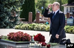 После этого впервые за 20 лет – также в сопровождении многочисленной охраны – Путин зашел в спортзал школы, где с 1 по 3 сентября 2004 года боевики держали в заложниках 1181 человека без еды, воды и медикаментов. В законсервированном здании, где остались следы от пуль и сгоревшие оконные рамы после штурма силовиков, Путин снова перекрестился и поставил свечку.
