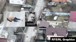 Через два часа дрон украинских военных из состава ТРО "Азов-Киев" (сейчас – 3-я ОШБр) снял видео, которое есть в распоряжении Радио Свобода. На нем видно как в этом месте лежит лицом вниз убитый Городецкий: